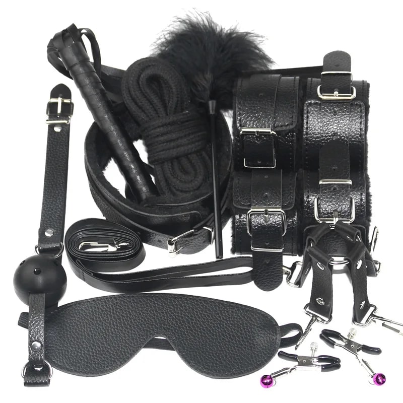 Sado mazo set 10 je namjenjen za početnike, koji ne zahtjevaju izniman kvalitet. Set sadrži: masku za oci, okovratnik i povodac, bic, golicalicu, kuglu za usta, lisice za ruke, lisice za noge, uze za vezivanje 5m, stipaljke za bradavice i dodatak za unakrsno vezivanje. Povezi koji idu oko ruku i nogu su obloženi posebnim krznenim materijalom kako ne bi bilo tragova od vezivanja. Kaisevi su lako podesivi tako da odgovaraju svim velicina zglobova i sl.