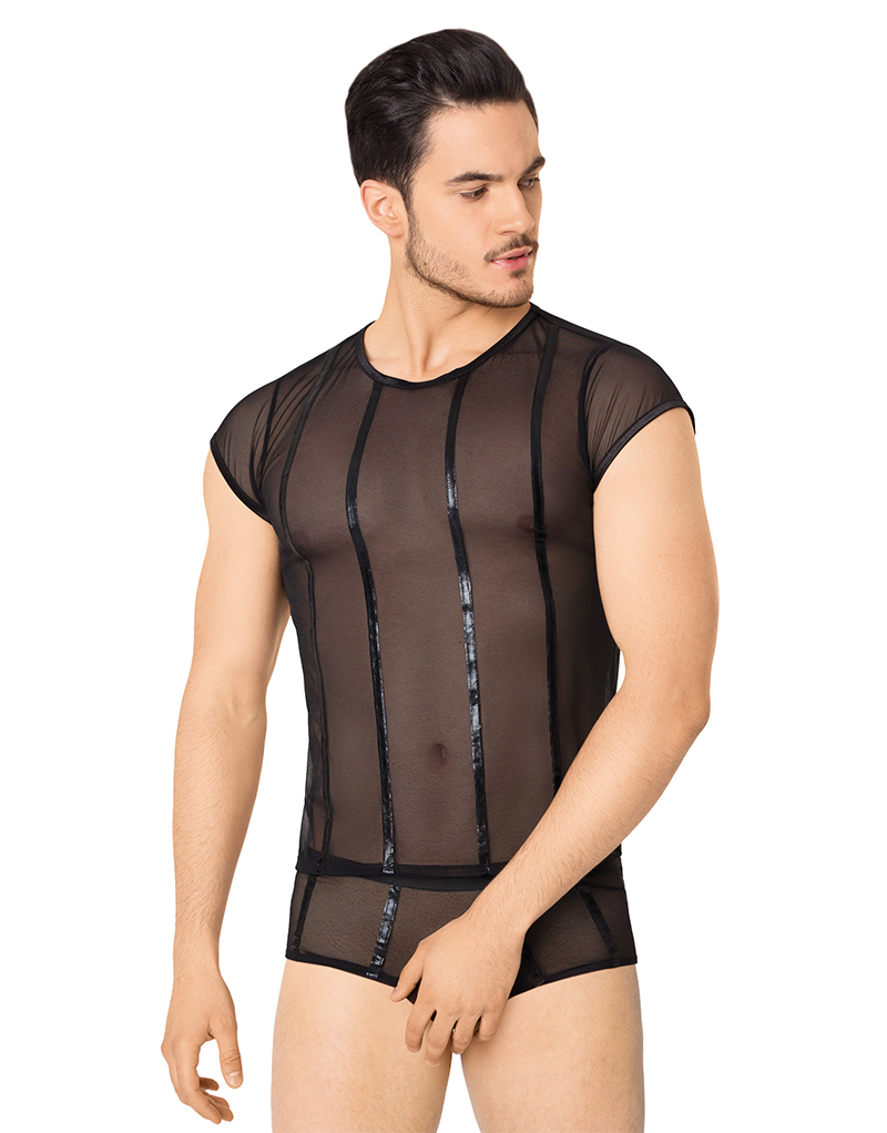 Komplet uključuje majicu kratkih rukava i gaćice Seksi muški set izrađen je od mekane elastične mreže u kombinaciji sa wet look neprozirnim linijama Ručno prati u hladnoj vodi, ne izbjeljivati, osušiti kapanjem