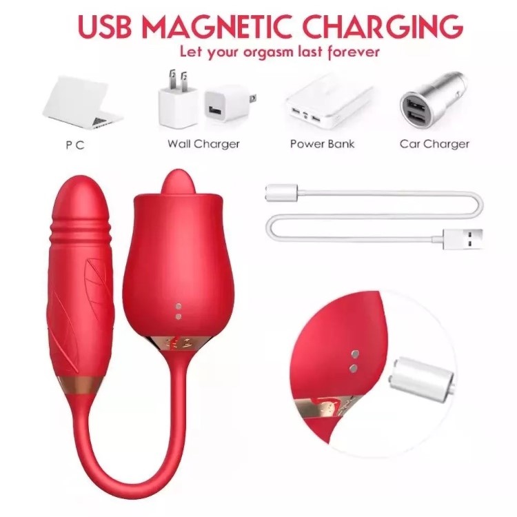 Rose 2 in 1 Telescopic Vibrator Ova neobična seksi igračka za dame donosi mnogo uzbuđenja i raznovrsnih stimulacija. Obložena je silikonom koji je bezbjedan za tijelo i prijatan na dodir. U potpunosti je vodootporna. Posjeduje dvostruku stimulaciju i to preko jezička u ruži na jednom kraju i vibratora sa teleskopskim izvlačenjem na drugom kraju. Obe stimulacije imaju po 10 različitih modova, koji se mijenjaju jednostavno pomoću dva dugmeta na ruži. Baterija se puni preko kabla sa USB portom koji dolazi u pakovanju. Dužina vibratora je 10 cm, a prečnik je 3 cm. Za maksimalno prijatne stimulacije preporuka je da se…